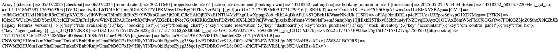 - hxxps://admin.bookandlink.com/index.php/bookingbutton/complete_invoice?checkin=05/07/2025&checkout=06/07/2025&roomid:rateid=202:11640&propertycode=64&action=decrement&bookingrowid=43218252&callingLoc=booking&numroom=1×tamp=2025-05-22%2019:44:34&token=43218252_682f1c322034e