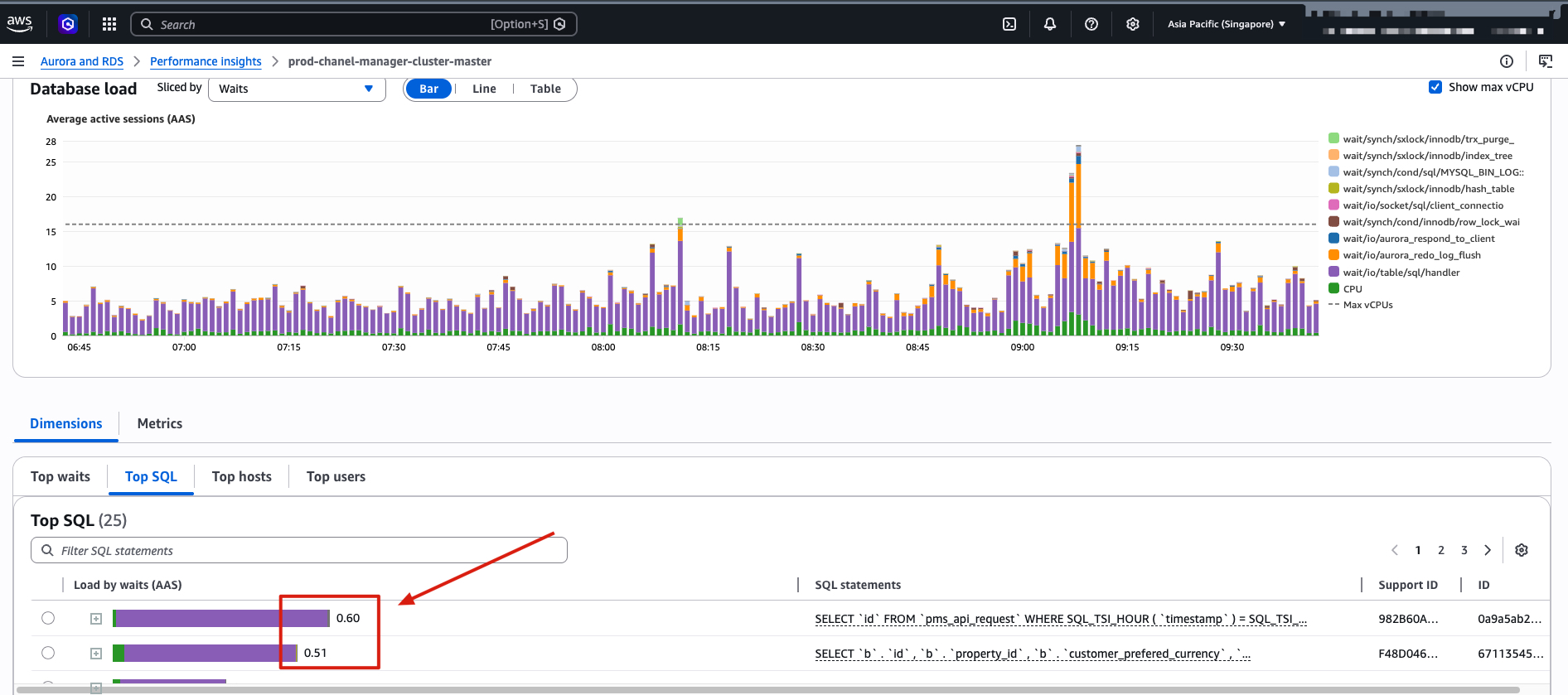 In the example above, the highest db load wait is at 0.6. If it is like this, it means the db load is already normal.