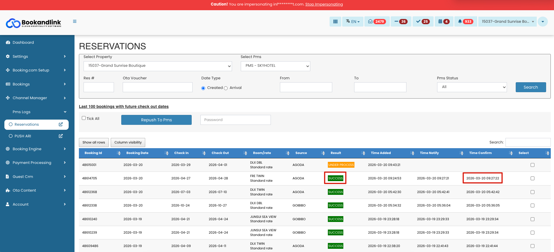 If the channel manager and DB load are normal and UP, then you can proceed with the process of repushing PMS reservations. Here are the steps: