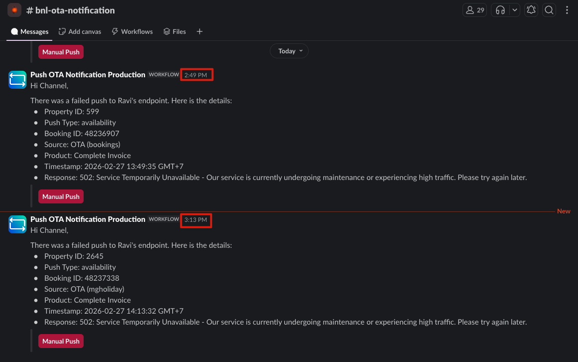 - There is a notification on #bnl-ota-notification but not in large numbers at the same time