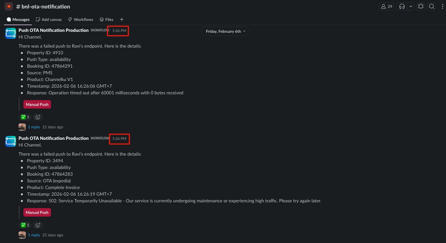 Make sure if you encounter this issue, you can tag @platform-on-duty, @bnl-lead-dev, @Ravi Prakash, and Mr. @Sukerta Wayan to request assistance in checking this issue.